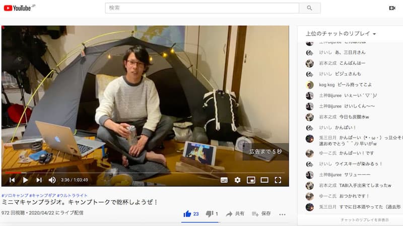自宅で飲みながらキャンプトークができるのって楽しいですねぇ〜!