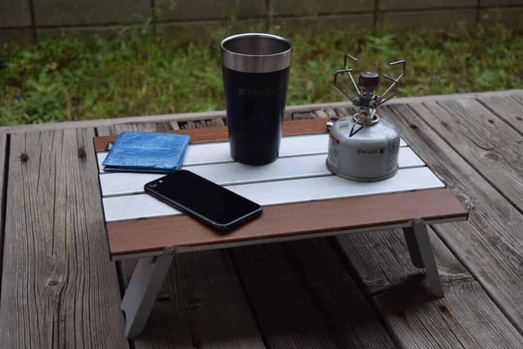 まず初めに紹介するのはソロキャンプで超超定番のテーブルであるキャプテンスタッグのアルミロールテーブル。