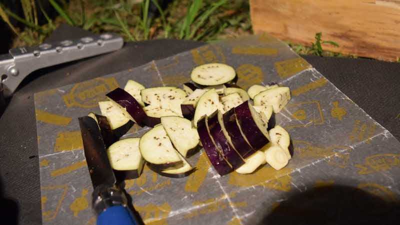 炊いてる間にナスとニンニクを切って炒めておいて、、、