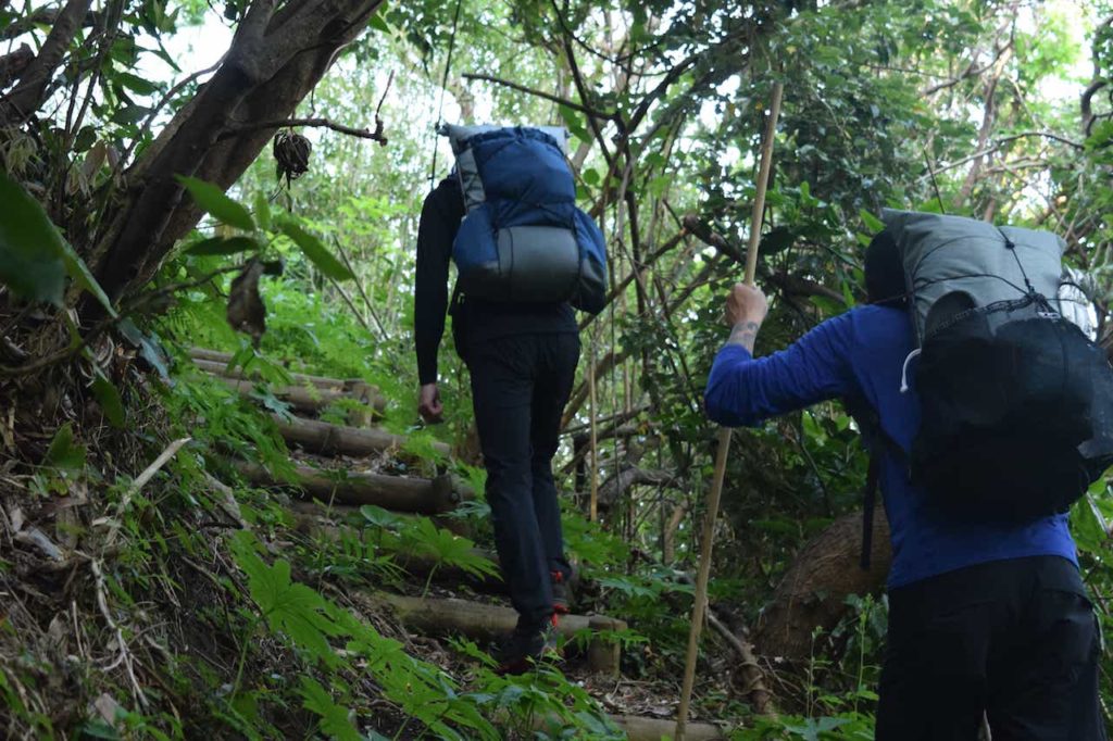 トレッキングポールの大切さに気付く2人。