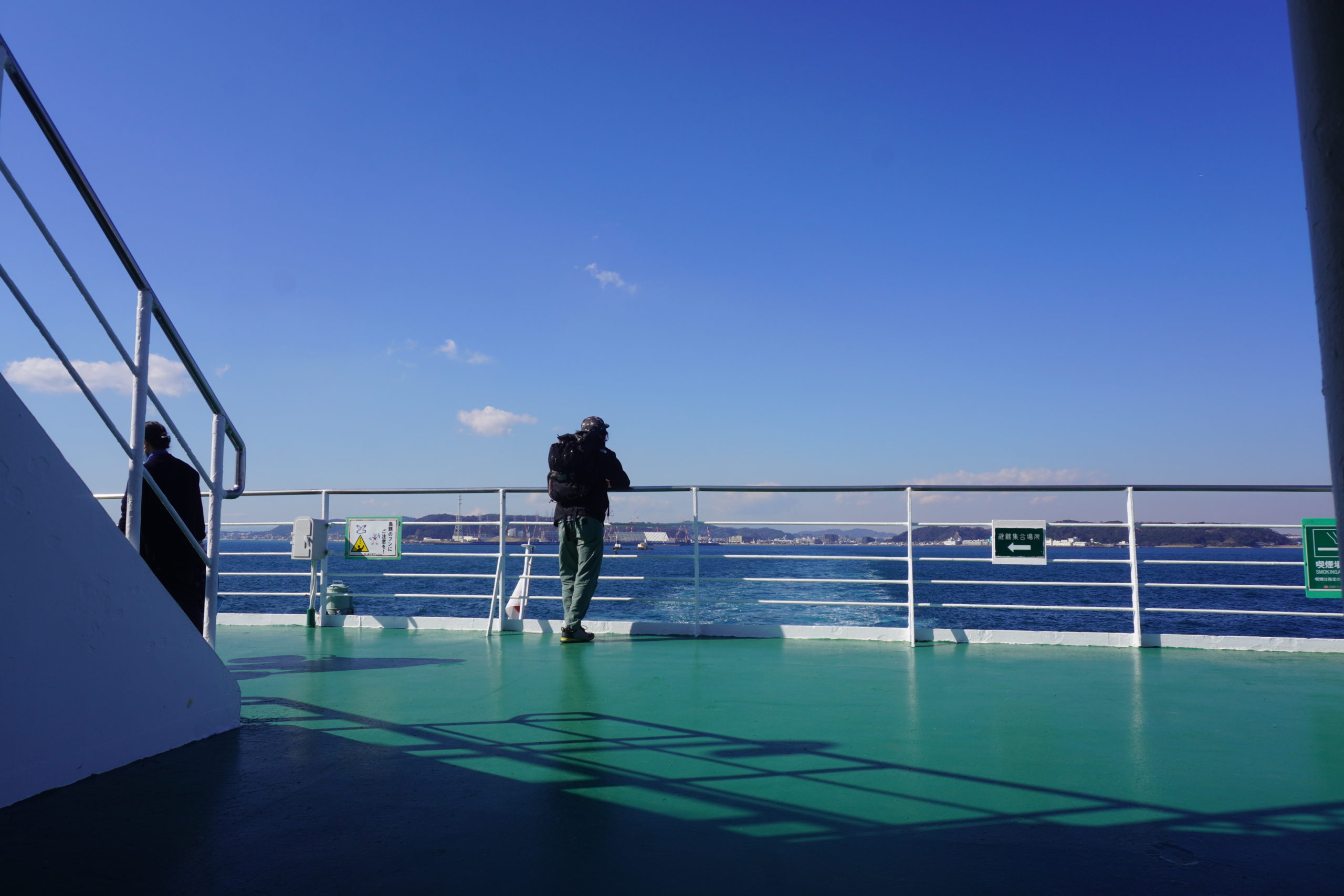 自転車を預け終わったら甲板に出て、海を眺めていました。