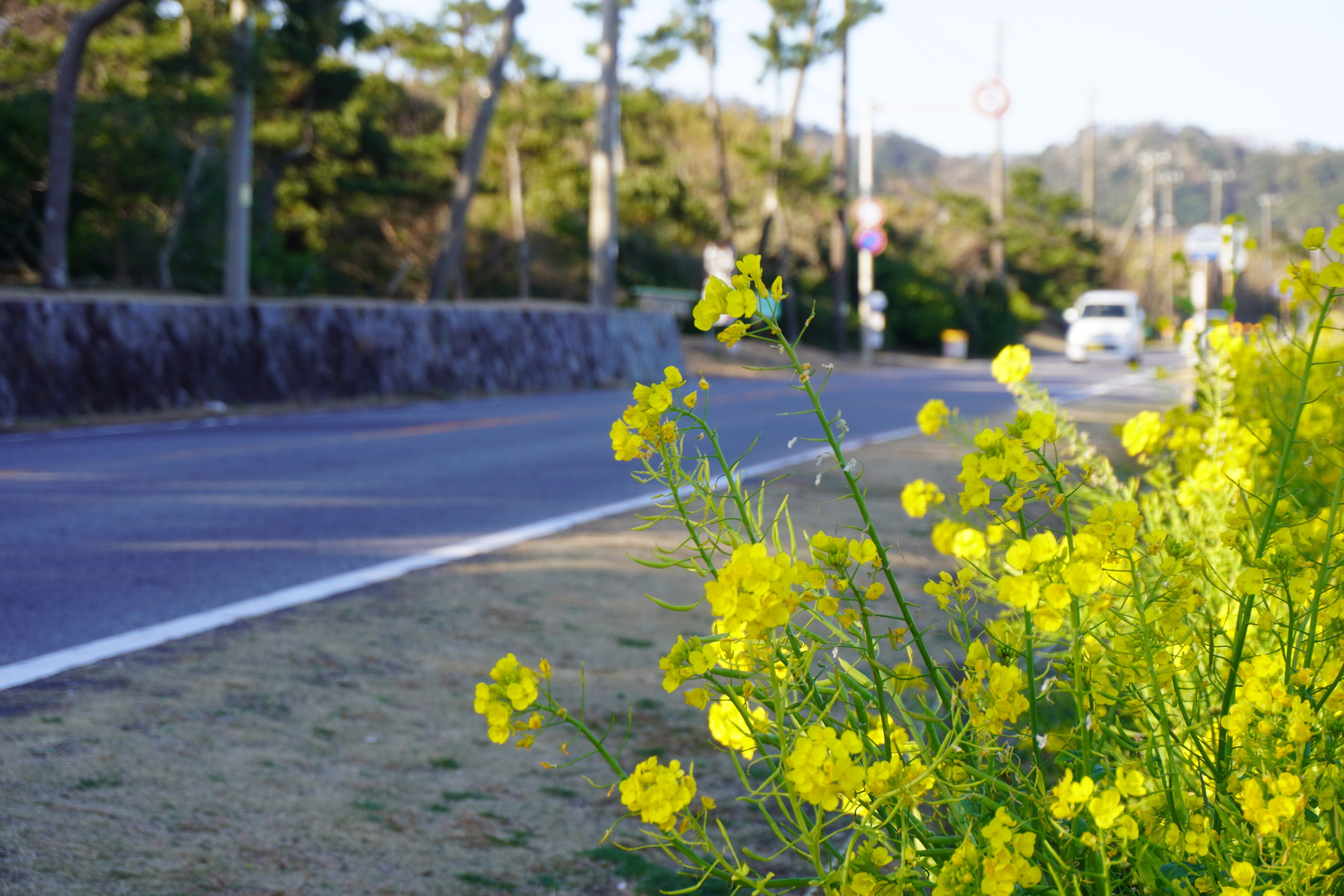 それが「南房総フラワーライン」ですね。楽しみにしていた南房総フラワーラインには所々に菜の花が咲いておりました。