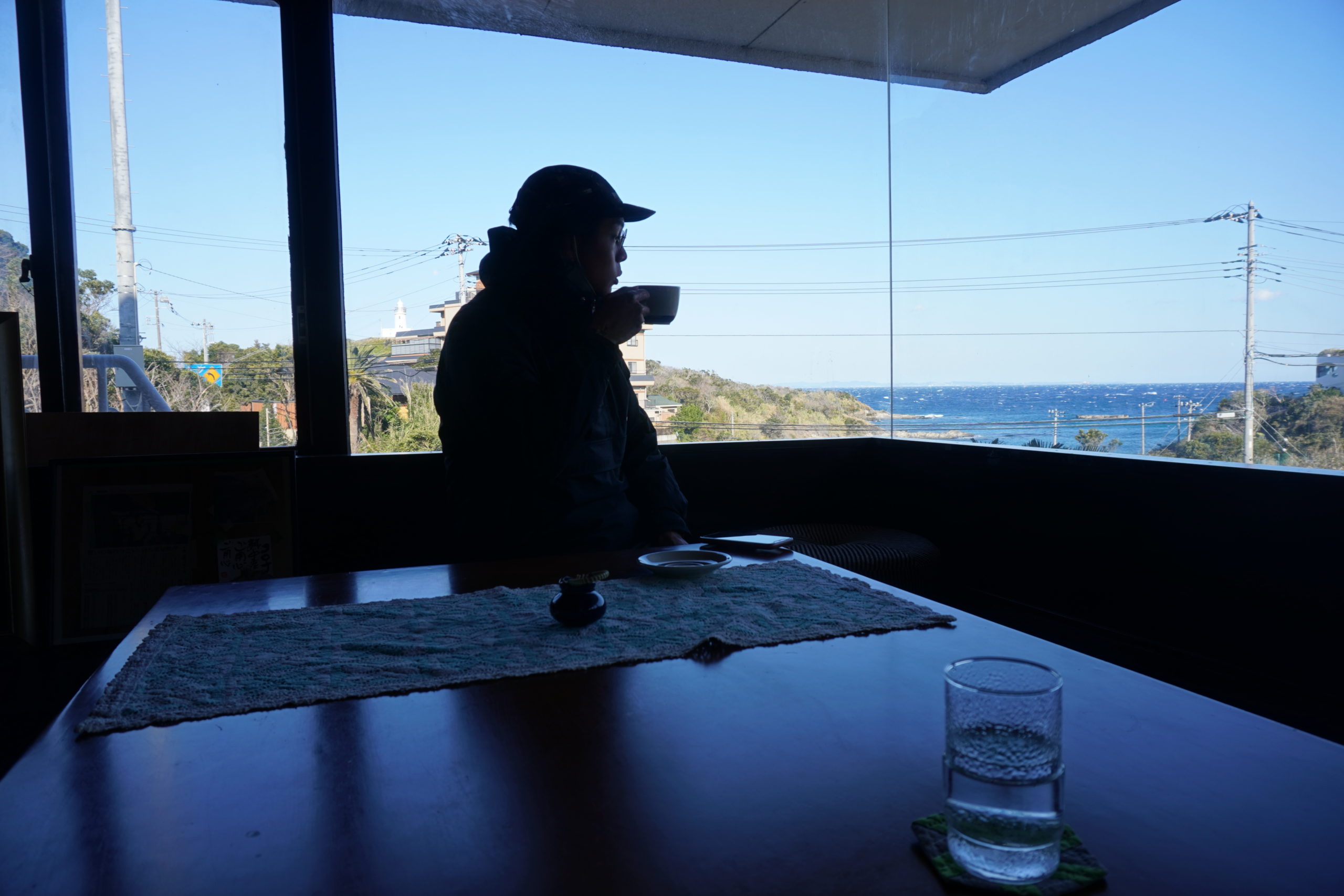 海の景色が綺麗に見えるカフェで、海を眺めつつゆっくりコーヒーを飲むことができました。