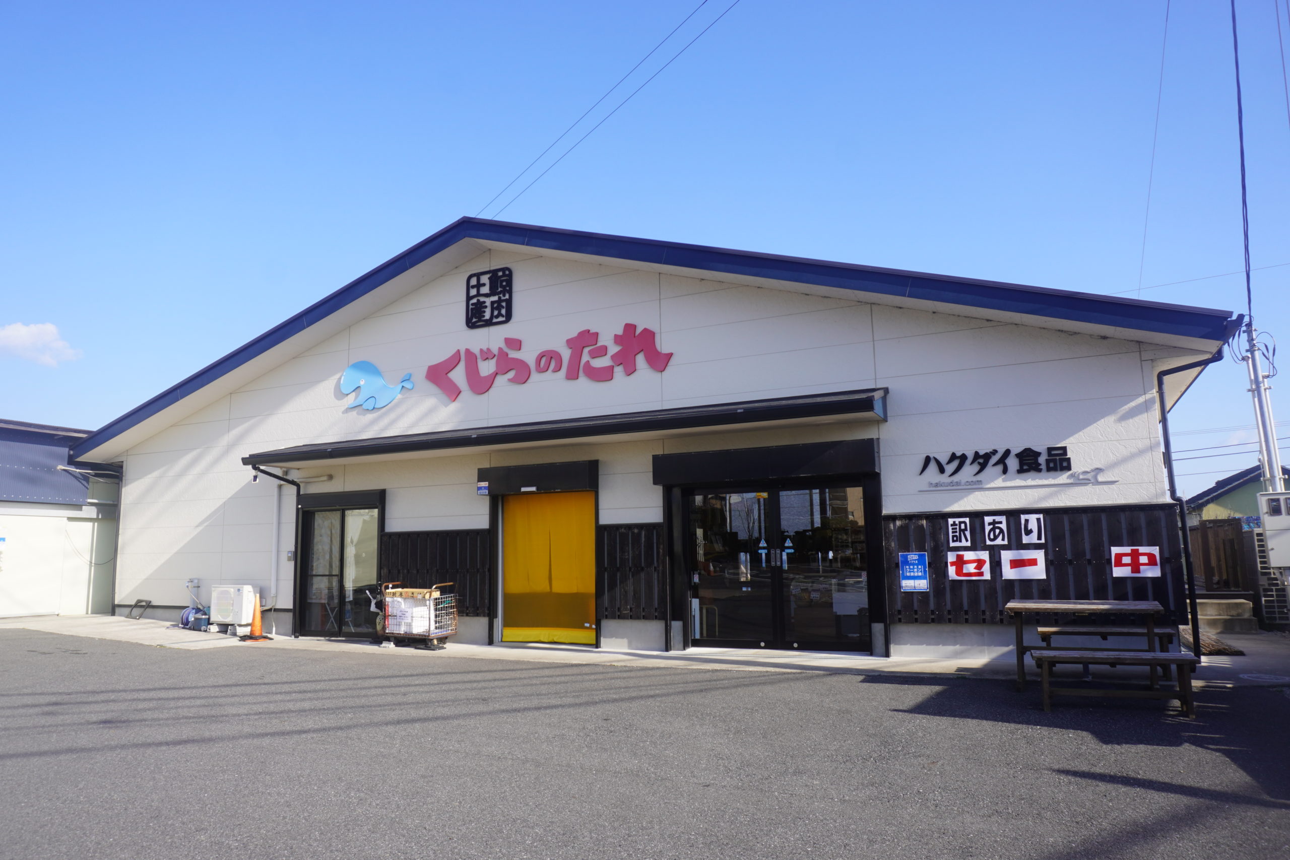 本日のキャンプ地がある和田浦エリアに近づくにつれて、クジラの文字が書いてある看板やお店も多くなってきます。