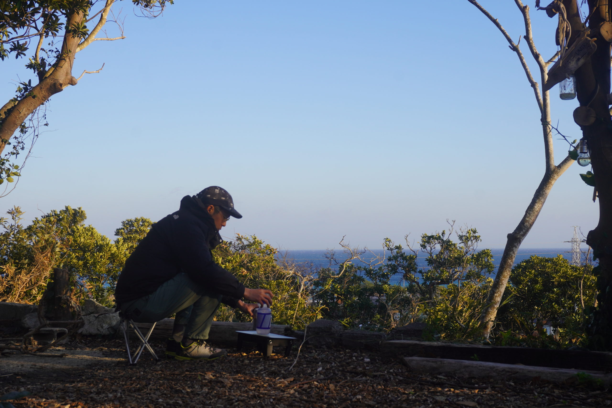 「こんなにアクセスのしやすいキャンプ場で広い海を見ながらお茶できるなんて!」感激しながらぼーっと海を眺めていました。