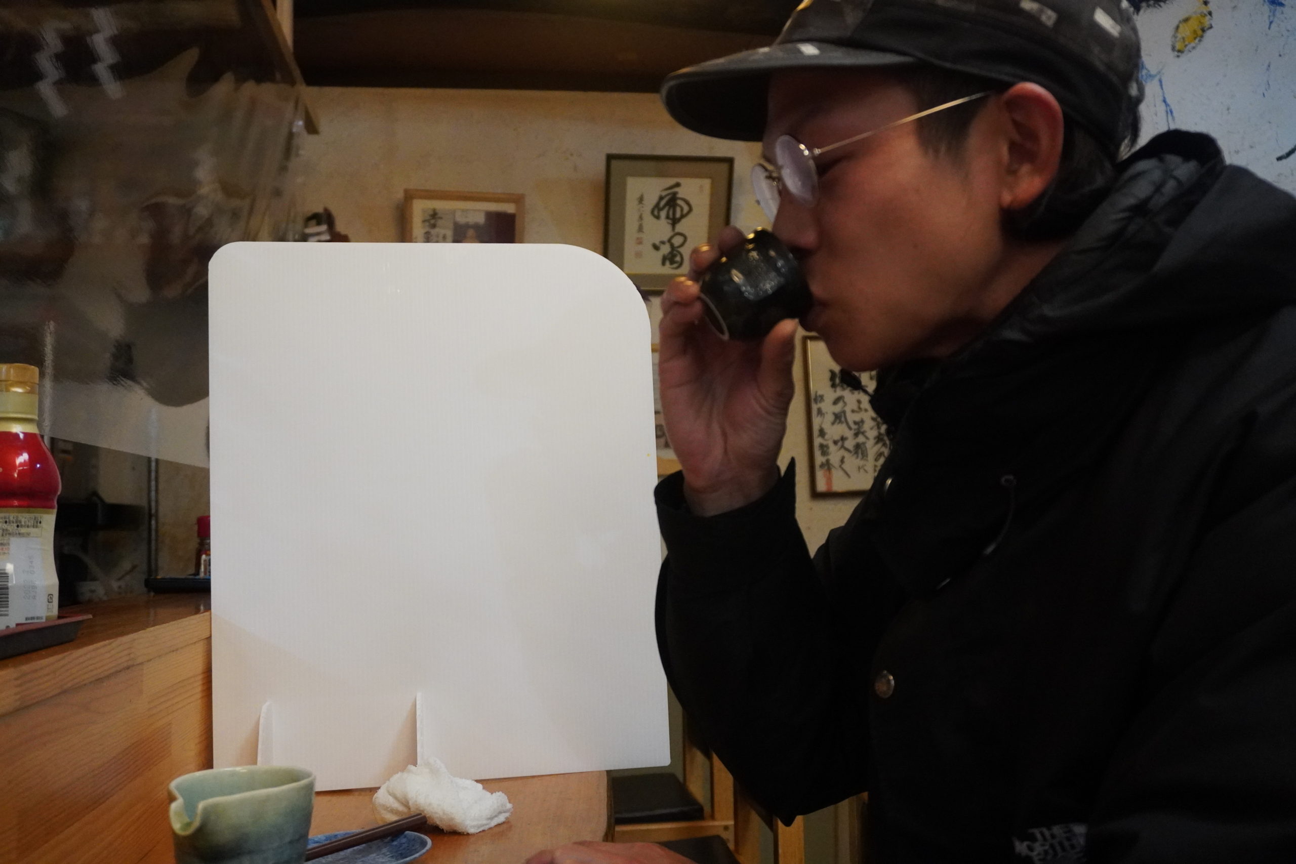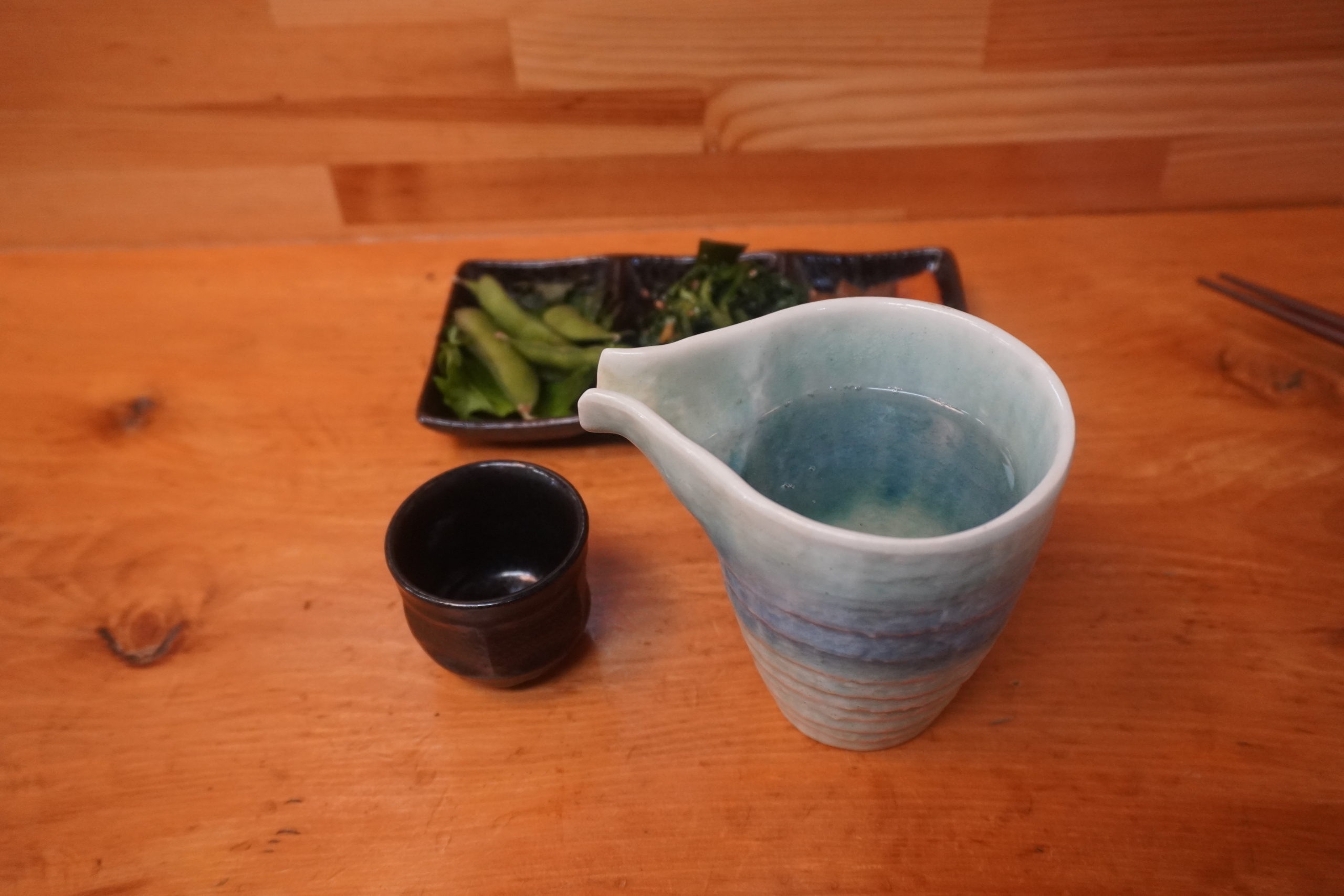 店内に入るなり、カウンターに座って南房総でおすすめの日本酒「腰古井」の熱燗を頂きます。