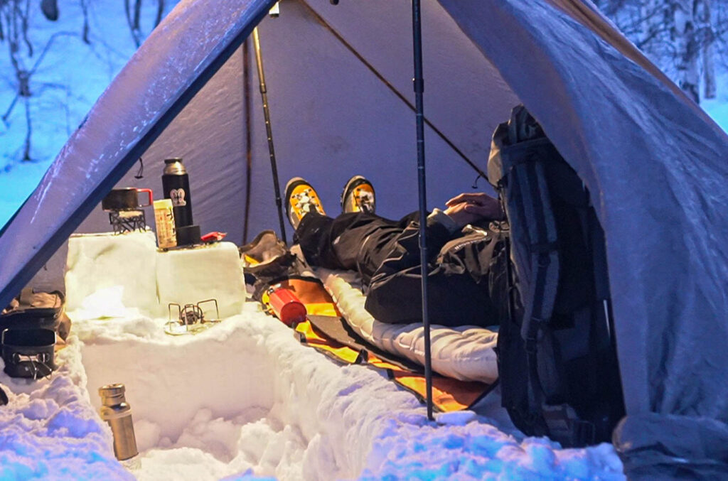 雪中キャンプって、朝イチの「寒い、動きたくない」が一番しんどいんけど、そのストレスがめっっちゃ軽減されるのが良いですね。