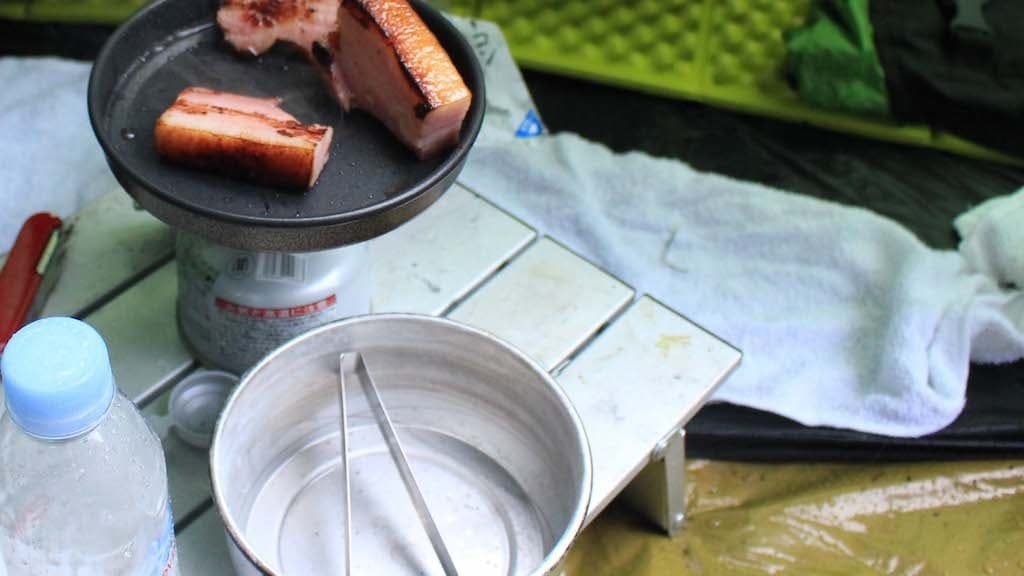 フライパンではお肉が焼けるし、フライパンはお鍋の蓋にもなるので、ご飯を炊くこともできる。キャンプをする上で、必要最低限の機能を発揮してくれる嬉しいクッカーですね。
