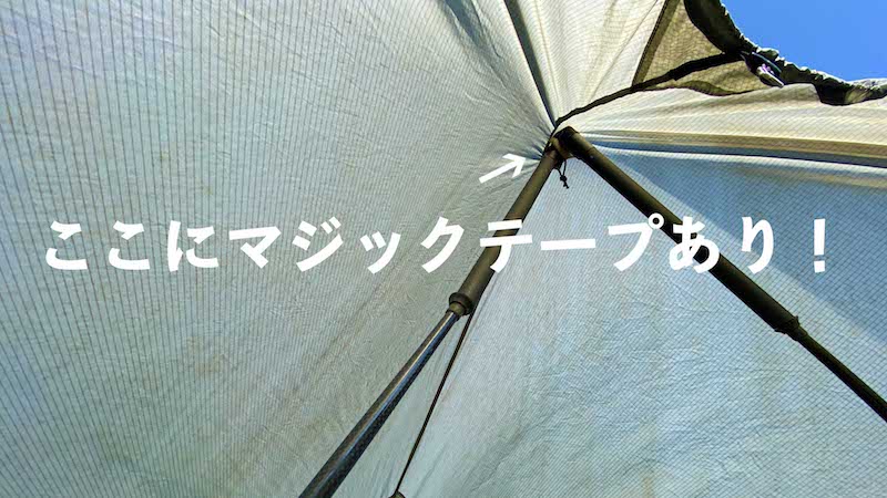 因みにニンジャタープには内側にマジックテープのギミックがあるので、ポールはがっちり固定されます。