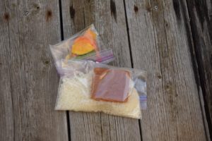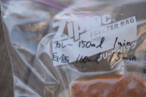 勿論しっかりとジップロックに移し替えます。必要な水の量と待機時間の記入をしましょう。現地でバタバタ「あれ??何分だっけ??」ってなっても圏外だと調べられません。