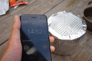 そしたら冷めないようにコジ―に入れて15分待ちます。