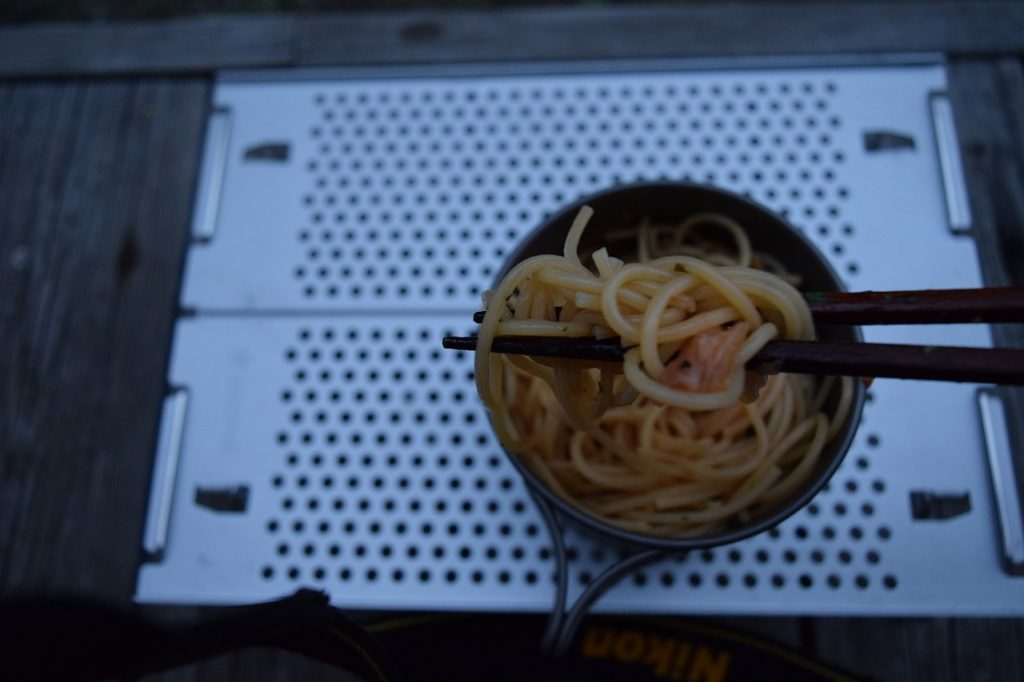 今日はそんな550mlしか入らないウルトラライトなチタンコッヘルで作るとまとスパゲッティの紹介をします。