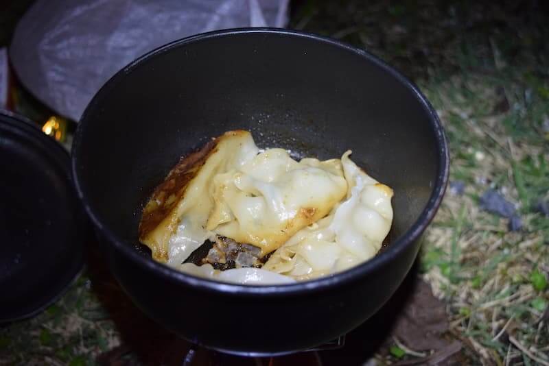 餃子は少しだけ水に浸らせて蓋をして、蒸しました。