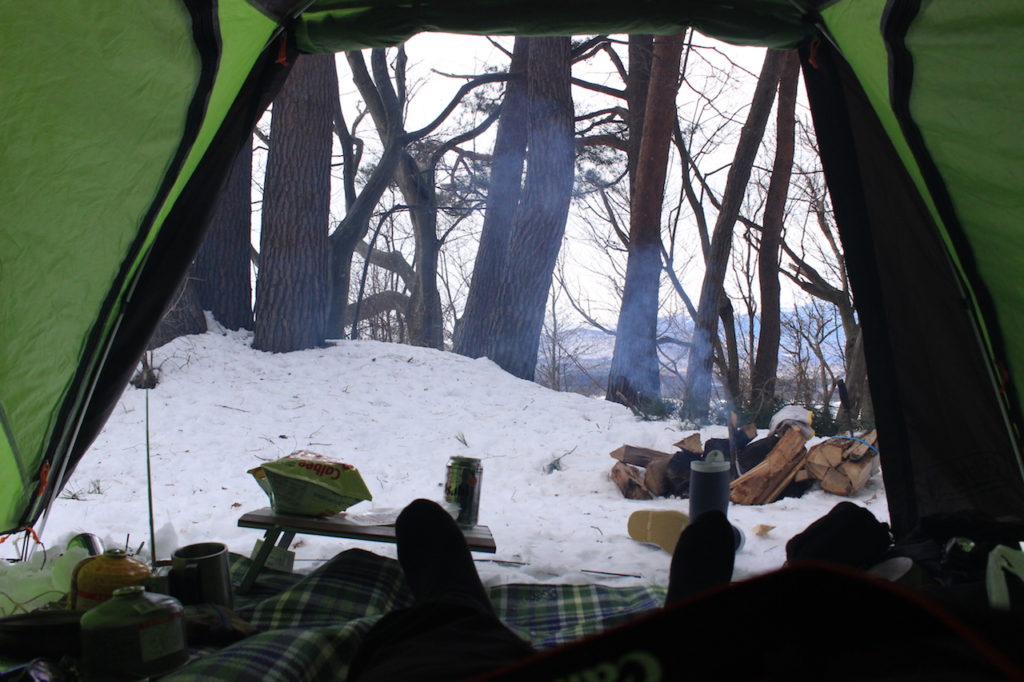テントを開けたまま寝るとそよ風が入ってきて、酔った身体に涼しくて心地いい。綺麗な景色をボヤーっと見ながらうとうとするのは贅沢この上ない時間です。