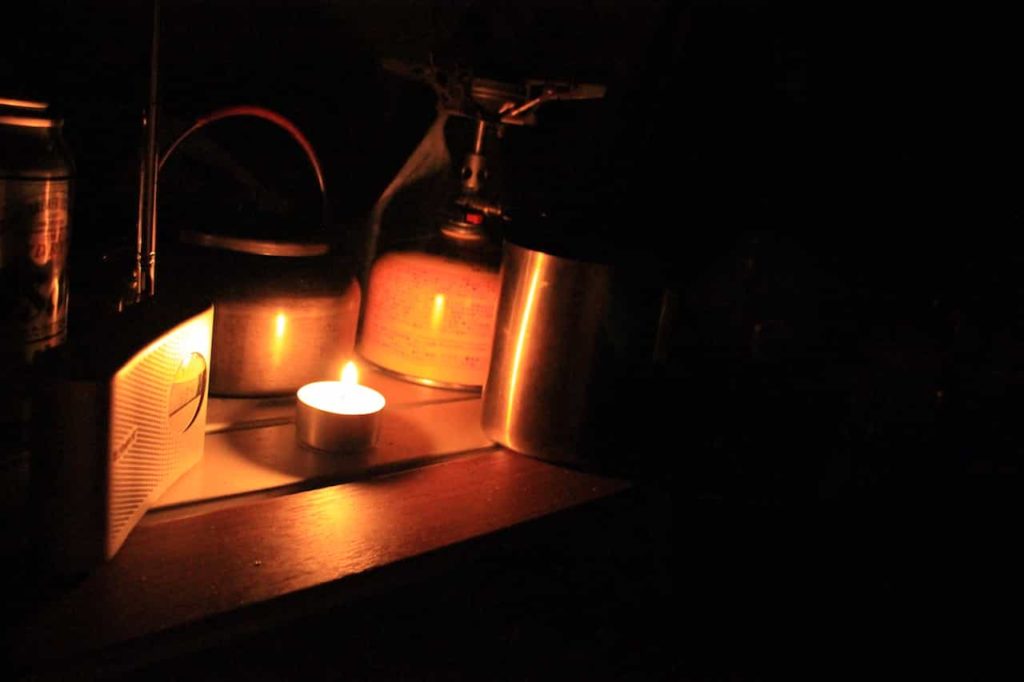 ソロキャンプの夜は不思議とラジオの音が馴染むので、ランタンやロウソクを焚いて、ラジオを楽しみます。