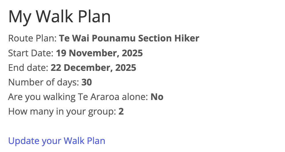 以下の追加情報にも記載しますが、パスの購入をし、ハイカーとしての登録をした情報がDoCのシステムに連携されたり、トレイルパックの手配がされるのには時間がかかります。2週間以上前には購入を済ませるようにしておくと安心です。
