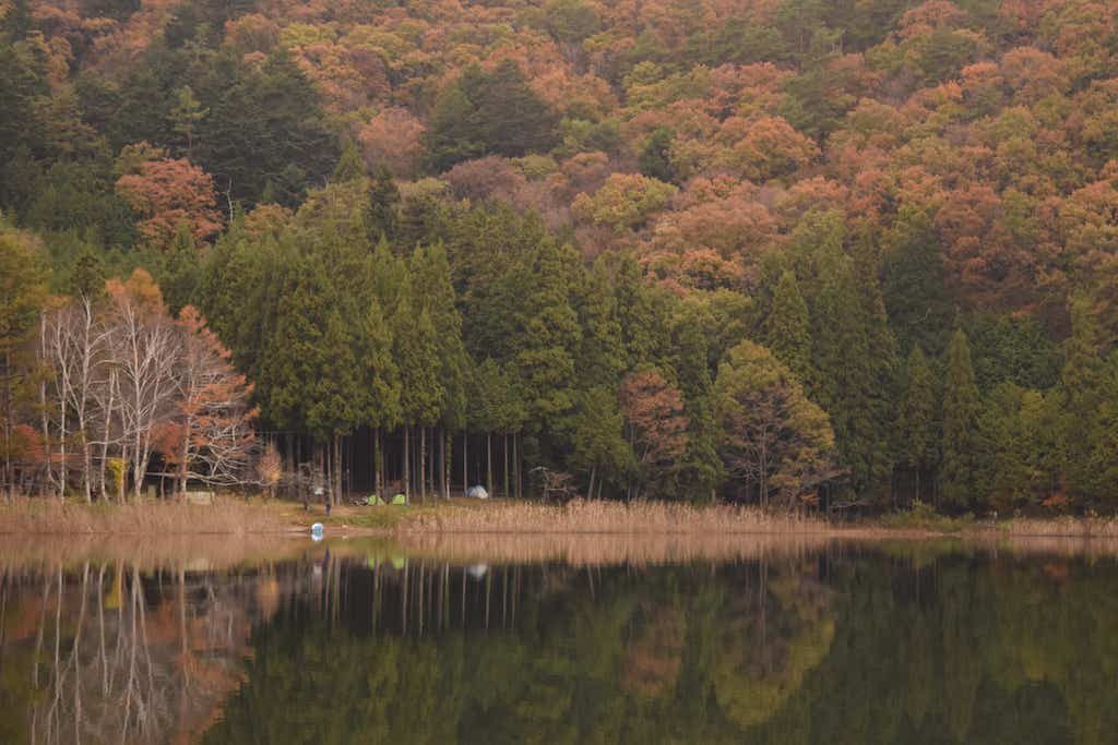 富士山の北西に位置する湖である四尾連湖にあり、ゆるキャン△が放送する前は本当に秘境のようなキャンプ場だったのを覚えています。駐車場から少し距離のある場所にキャンプ地があるので比較的難易度は高く、ソロキャンパー向けであり、バックパックキャンパー向けのキャンプ場です。